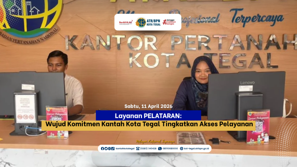 Tegal – Dalam upaya meningkatkan mutu serta memperluas akses pelayanan kepada masyarakat, Kantor Pertanahan Kota Tegal kembali menggelar kegiatan PELATARAN (Pelayanan Pertanahan Akhir Pekan) pada Sabtu (11/04).