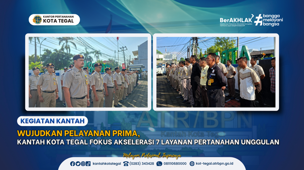 TEGAL – Mengawali pekan dengan semangat baru, jajaran Kantor Pertanahan Kota Tegal menggelar apel pagi rutin pada Selasa (14/04/2026). Momentum ini bukan sekadar rutinitas, melainkan menjadi ajang konsolidasi untuk meningkatkan kualitas pelayanan publik bagi warga Kota Bahari.
